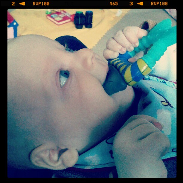 Early one morning... our little wake-up call (teething)!