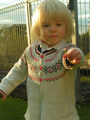 * Currently pretend play is the newest thing - she has a little dollshouse with 7 little dolls... there is 'Daddy, Mummy, Button and 'lil M' all living there as well, so sometimes I have to listen and try and work out if she is talking to that 'Mummy' or me! I have a little video of her playing with this, but no photos - as it would mean nothing! However, she also has a little train she got right back for her 1st birthday that is getting played with everyday as well - it has 'peoples' in it, and drives up and down hills and mountains all the time!