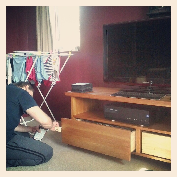 * Hubby managed to finish one of the drawers on the Entertainment Unit this past weekend; promising me that the other one will be completed and attached next weekend! Wahoo!