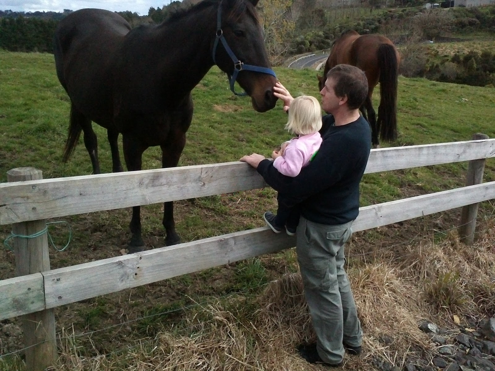 * On the way home from church this afternoon Hubby stopped so Button could 'meet' the 'Neigh-Neighs' that live down the road... she seems to have quite a soft spot for horses (well animals in general); much to hubby's delight as he worked with horses fora few years:
