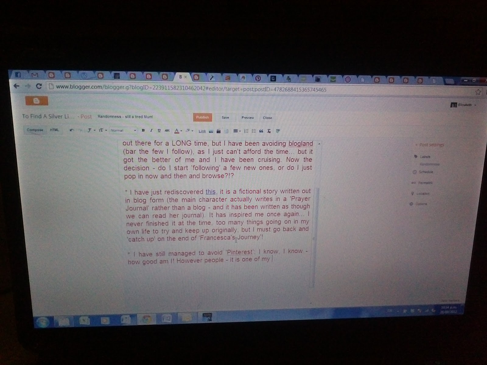 * I have just rediscovered this, it is a fictional story written out in blog form (the main character actually writes in a 'Prayer Journal' rather than a blog - and it has been written as though we can read her journal). It has inspired me once again... I never finished it at the time, too many things going on in my own life to try and keep up originally, but I must go back and 'catch up' on the end of 'Francesca's Journey'!